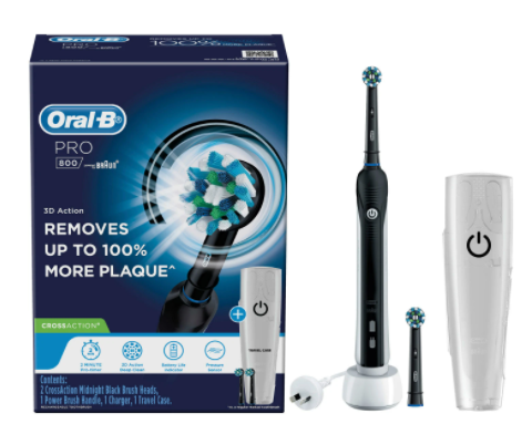 The Oral-B 800 is packed with features. With a 2-minute timer, you can be sure you are cleaning your teeth and gums for the time us dentists recommend. The in-built pressure sensor ensures you don’t press too hard and scrub your gums and enamel away! Brushing too hard can lead to teeth erosion, which can mean moderate to severe sensitivity and dental fillings down the line. The Oral-B 800 helps you look after your teeth gently and efficiently.